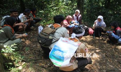 REPUBLIKA.CO.ID, BANDUNG — Peserta Bebersih Leuweung #3 melakukan edukasi kepada pengunjung di hutan Gunung Manglayang, Kabupaten Bandung, Sabtu (11/10/2025).