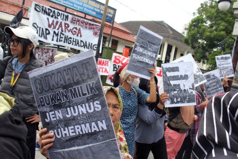 Puluhan warga Sukahaji dan mahasiswa menggelar aksi solodaritas atas penahanan warga Sukahaji di depan Pengadilan Negeri (PN) Bandung, Kota Bandung, Selasa (11/11/2025). Foto: Edi YusufPuluhan warga Sukahaji dan mahasiswa menggelar aksi solodaritas atas penahanan warga Sukahaji di depan Pengadilan Negeri (PN) Bandung, Kota Bandung, Selasa (11/11/2025). Foto: Edi Yusufwarga Sukahaji dan mahasiswa menggelar aksi solodaritas atas penahanan warga Sukahaji di depan Pengadilan Negeri (PN) Bandung, Kota Bandung, Selasa (11/11/2025). Foto: Edi YusufSidang perdana enam warga terkait konflik sengketa tanah Sukahaji di depan Pengadilan Negeri (PN) Bandung, Kota Bandung, Selasa (11/11/2025). Foto: Edi Yusuf