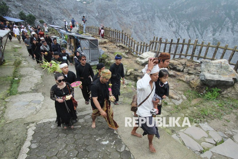 Ribuan masyarakat adat dari berbagai etnis, budaya, agama dan kepercayaan dari sejumlah daerah di Indonesia berkumpul dalam acara adat tahunan Ngertakeun Bumi Lamba di kawasan Gunung Tangkuban Parahu, Lembang, Kabupaten Bandung Barat, Ahad (22/6/2025). Dalam acara yang bertajuk Ngasuh Ratu Ngayak Menak, Ngaraksa Mandala Makuan Nagara ini peserta melakukan doa bersama untuk kedamaian dan keselamatan bangsa.