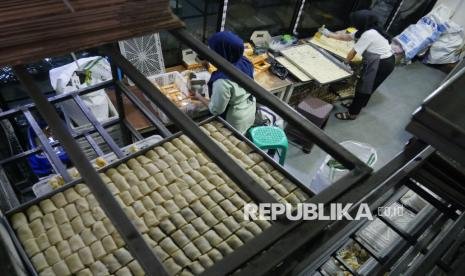 Aktivitas pengawai membuat kue Pia di Pabrik Pia Kawitan Jalan Raya Pangalengan, Kecamatan Pangalengan, Kabupaten Bandung, Kamis (16/10/2025). Kue pia merupakan salah satu kuliner unggulan khas Pangalengan yang diburu wisatawan sebagai oleh-oleh. Produksi Pia Kawitan tidak terlepas dari peran Kredit Usaha Rakyat (KUR) bank bjb. (FOTO : Edi Yusuf)