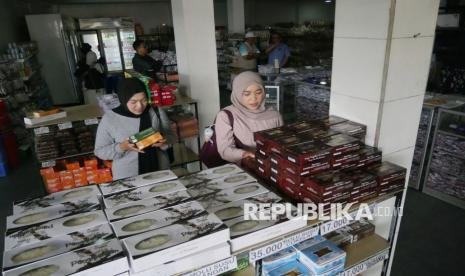 Pengunjung membeli aneka kue Pia di toko Pia Kawitan Jalan Raya Pangalengan, Kecamatan Pangalengan, Kabupaten Bandung, Kamis (16/10/2025). Kue pia merupakan salah satu kuliner unggulan khas Pangalengan yang diburu wisatawan sebagai oleh-oleh. Produksi Pia Kawitan tidak terlepas dari peran Kredit Usaha Rakyat (KUR) bank bjb. (FOTO : Edi Yusuf)