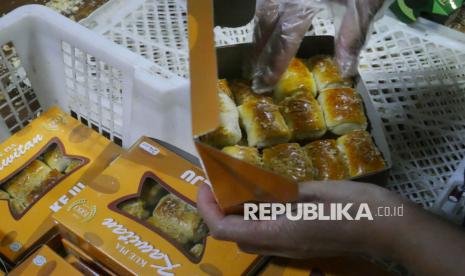 Aktivitas pengawai mengemas kue Pia di Pabrik Pia Kawitan Jalan Raya Pangalengan, Kecamatan Pangalengan, Kabupaten Bandung, Kamis (16/10/2025). Kue pia merupakan salah satu kuliner unggulan khas Pangalengan yang diburu wisatawan sebagai oleh-oleh. Produksi Pia Kawitan tidak terlepas dari peran Kredit Usaha Rakyat (KUR) bank bjb. (FOTO : Edi Yusuf)