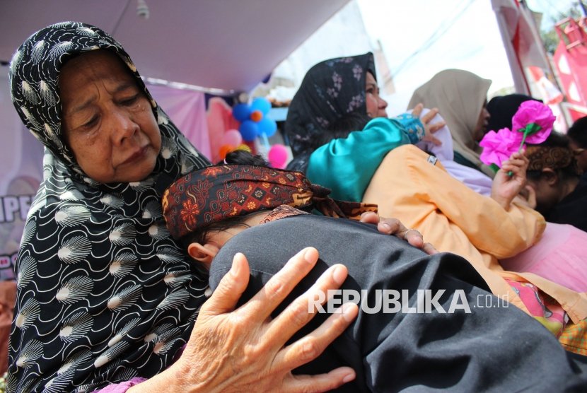 Sejumlah anak bersimpuh pada ibunya saat mengikuti acara sungkem massal dalam rangka Hari Ibu bertajuk Untuk Ibu Terbaik di Dunia yang digelar Karang Taruna di Kelurahan Nyengseret, RW 5, Liogenteng, Kecamatan Astanaanyar, Kota Bandung, Senin (22/12/2025). Peringatan Hari Ibu yang digelar oleh warga RW 05 Kelurahan Nyengseret tersebut diisi dengan tradisi sungkem atau meminta maaf sebagai bentuk ungkapan bakti dan kasih sayang kepada orang tua.