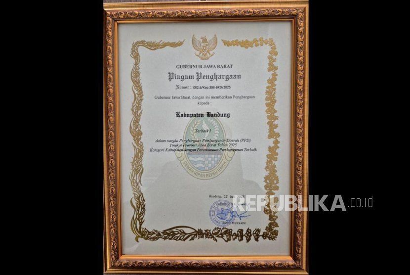 REPUBLIKA.CO.ID, BANDUNG — Pemerintah Kabupaten (Pemkab) Bandung kembali menorehkan prestasi gemilang di tingkat Provinsi Jawa Barat. Tahun ini, Kabupaten Bandung dinobatkan sebagai Penerima Penghargaan Pembangunan Daerah (PPD) Terbaik 1 Tingkat Provinsi Jawa Barat Tahun 2025.