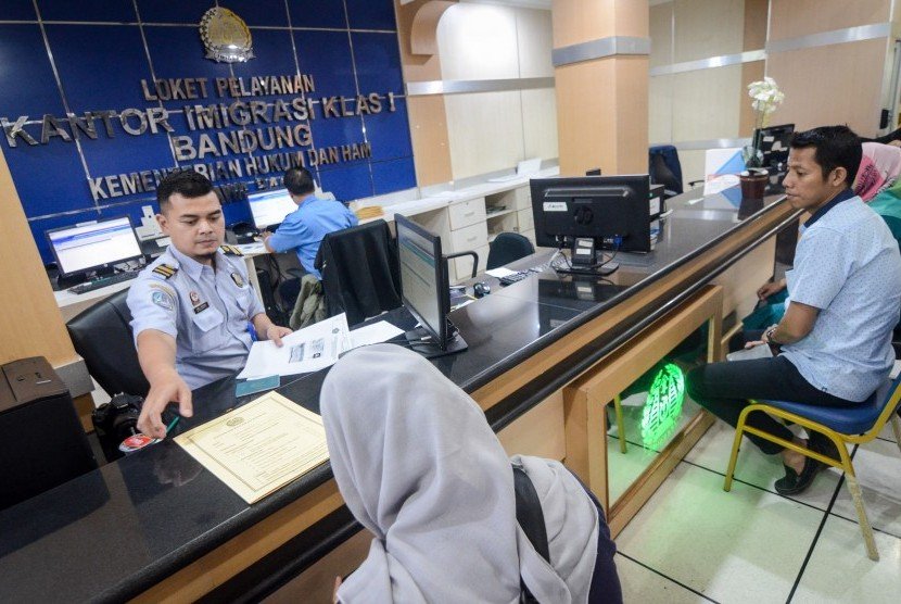 Petugas melayani pemohon paspor di Kantor Imigrasi Kelas I Bandung, Jawa Barat.