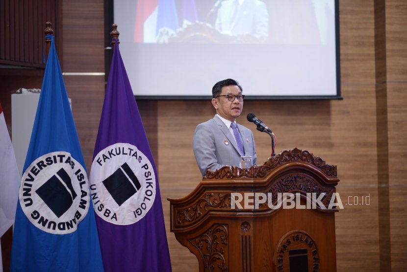 Gubernur Lemhanas Ace Hasan Sadzily saat memberikan kuliah umum di acara milad Fakultas Psikologi Universitas Islam Bandung (Unisba)