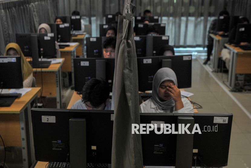Peserta mengikuti Ujian Tulis Berbasis Komputer – Seleksi Nasional Berbasis Tes (UTBK-SNBT) di kampus Universitas Negeri Jakarta (UNJ), Jakarta, Selasa (29/4/2025). Ombdusman mendapat laporan adanya kecurangan dalam pelaksanaan UTBK SNBT yang digelar secara serentak se-Indonesia pada 23 April hingga 3 Mei 2025. Seleksi masuk Perguruan Tinggi Negeri (PTN) ini diikuti oleh 860.976 peserta yang memperebutkan sebanyak 259.564 kursi PTN. Sementara untuk gelaran UTBK SNBT di kampus UNJ berlangsung hingga 5 Mei mendatang dan diikuti oleh 33.354 peserta di wilayah Jabodetabek.