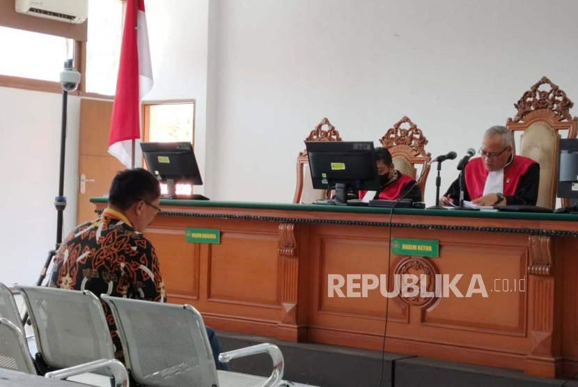 Bupati Cirebon Sunjaya Purwadisastra tengah mendengarkan vonis dari majelis hakim di Pengadilan Negeri Bandung