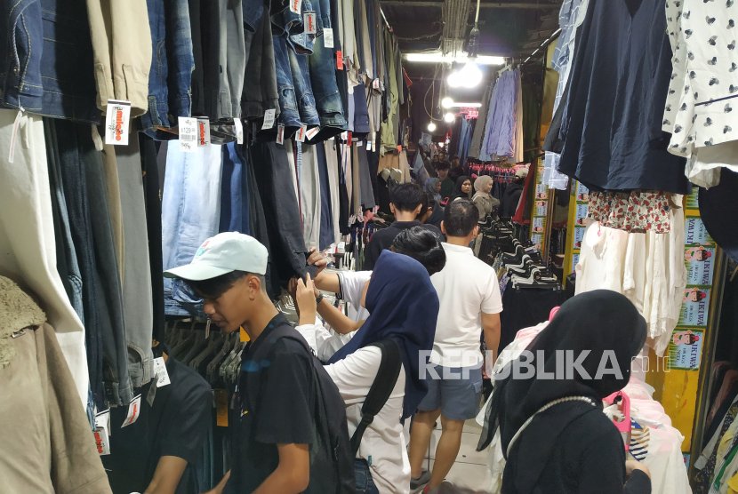 Jelang Hari Raya Idul Fitri, Pasar Cimol Gedebage, Kota Bandung, dibanjiri pembeli, Senin (8/4/2024). Di pusat thrifting atau pakaian bekas impor terbesar di Kota Bandung ini para pengunjung bisa mendapatkan pakaian dengan harga sangat murah, dengan kualitas baik bahkan kalau beruntung bisa mendapatkan barang branded.