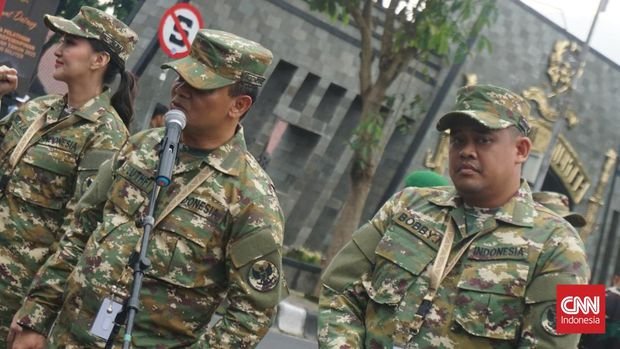 Rombongan kepala daerah peserta kegiatan retreat mulai tiba di Kompleks Akademi Militer (Akmil) Magelang, Jawa Tengah, Jumat (21/2) sore. Rombongan kepala daerah tiba sekitar pukul 15.45 WIB dari Rindam IV/ Diponegoro menggunakan sejumlah bus. Mereka mengenakan seragam komponen cadangan (komcad) lengkap. Gubernur Sumatera, Bobby Nasution jadi yang paling depan. Dia berjalan bersama Gubernur Jawa Tengah, Ahmad Lutfi. CNN Indonesia/Tunggul DamarjatiRombongan kepala daerah peserta kegiatan retreat mulai tiba di Kompleks Akademi Militer (Akmil). (CNN Indonesia/Tunggul Damarjati)